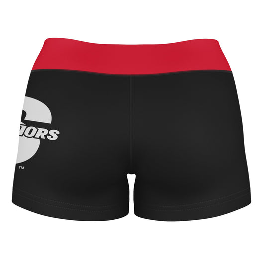 Cal State Stanislaus Warriors CSUSTAN Logo on Thigh & Waistband Black & Red Womens Yoga Booty Workout Shorts by Vive La Fete