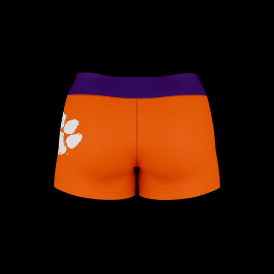 Clemson Tigers Logo on Thigh and Waistband Orange & Purple Womens Yoga Booty Workout Shorts by Vive La Fete