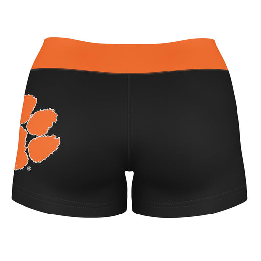 Clemson Tigers Logo on Thigh & Waistband Black & Orange Womens Yoga Booty Workout Shorts by Vive La Fete