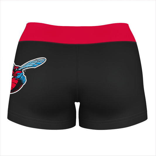 Delaware State Hornets Logo on Thigh & Waistband Black & Red Womens Yoga Booty Workout Shorts by Vive La Fete