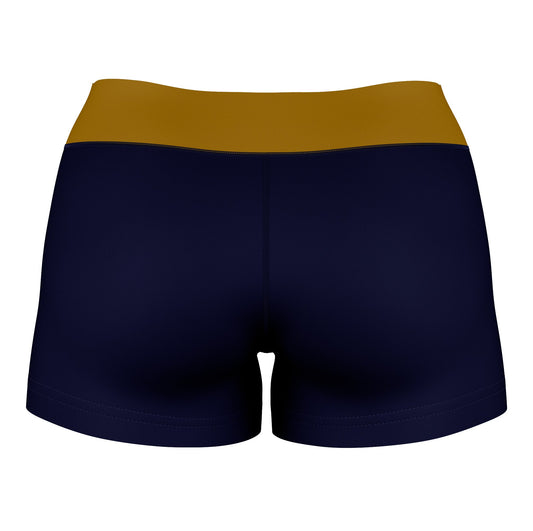 FIU Panthers Logo on Thigh & Waistband Blue Gold Womens Yoga Booty Workout Shorts by Vive La Fete