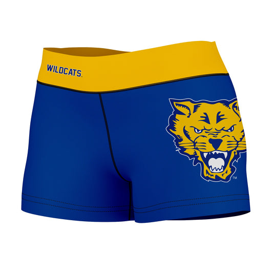 Fort Valley State Wildcats FVSU Logo on Thigh & Waistband Blue Gold Womens Yoga Booty Workout Shorts by Vive La Fete