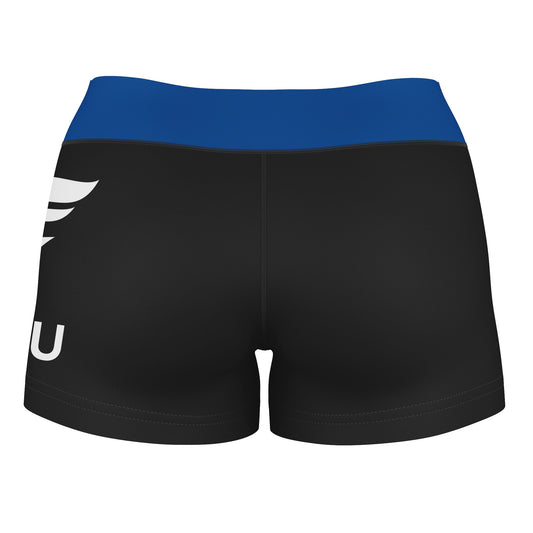 Eastern Illinois Panthers EIU Logo on Thigh & Waistband Black & Blue Womens Yoga Booty Workout Shorts by Vive La Fete