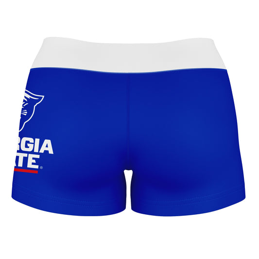 Georgia State Panthers Logo on Thigh & Waistband Blue White Womens Yoga Booty Workout Shorts by Vive La Fete