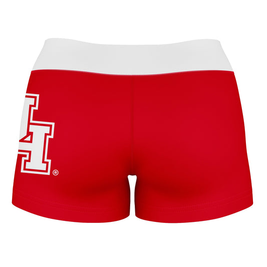 Houston Cougars Logo on Thigh & Waistband Red White Womens Yoga Booty Workout Shorts by Vive La Fete