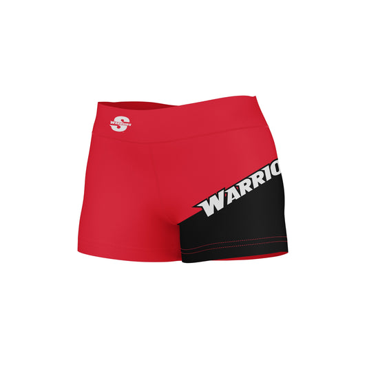 Cal State Stanislaus Warriors Game Day Collegiate Leg Color Block Red Black Optimum Womens Yoga Shorts by Vive La Fete
