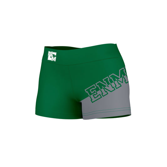 ENMU Eastern New Mexico Greyhounds Game Day Collegiate Leg Color Block Green Gray Optimum Womens Yoga Shorts by Vive La Fete
