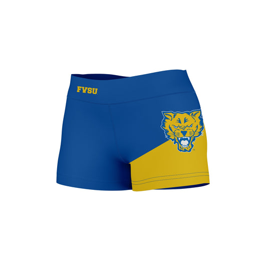 Fort Valley State Wildcats FVSU Game Day Collegiate Leg Color Block Blue Gold Optimum Womens Yoga Shorts by Vive La Fete