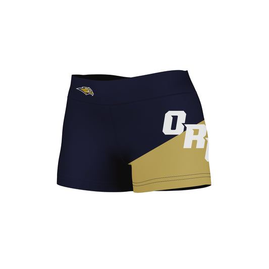 Oral Roberts Golden Eagles Game Day Collegiate Leg Color Block Navy Gold Optimum Womens Yoga Shorts by Vive La Fete
