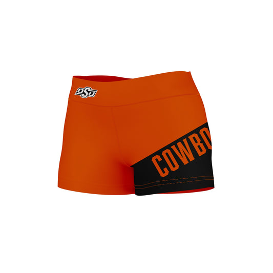 OSU Cowboys Game Day Collegiate Leg Color Block Orange Black Optimum Womens Yoga Shorts by Vive La Fete