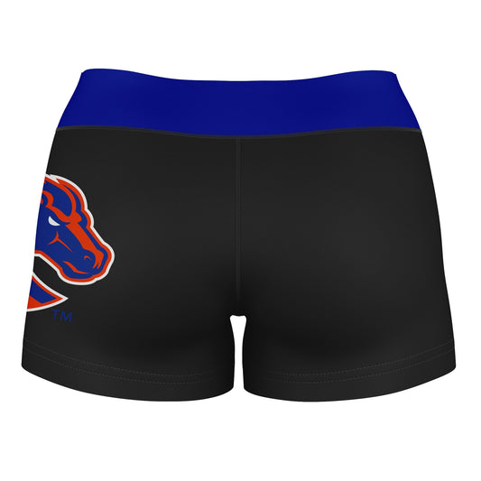 Boise State Broncos Logo on Thigh and Waistband Black & Blue Womens Yoga Booty Workout Shorts by Vive La Fete