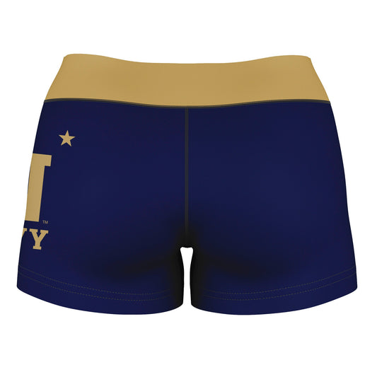 US Naval Academy Midshipmen Logo on Thigh & Waistband Navy Gold Womens Yoga Booty Workout Shorts by Vive La Fete
