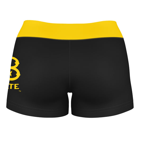 CSULB 49ers Game Day Logo on Thigh and Waistband Black & Gold Womens Yoga Booty Workout Shorts by Vive La Fete