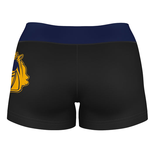 Buffalo Bulls Logo on Thigh and Waistband Black & Blue Womens Yoga Booty Workout Shorts by Vive La Fete