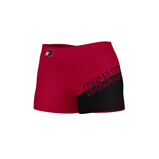 Bridgewater State Bears BSU Game Day Collegiate Leg Color Block Red Black Optimum Womens Yoga Shorts by Vive La Fete