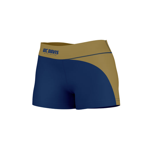 UC Davis Aggies Game Day Collegiate Waist Color Block Navy Gold Optimum Womens Yoga Shorts by Vive La Fete