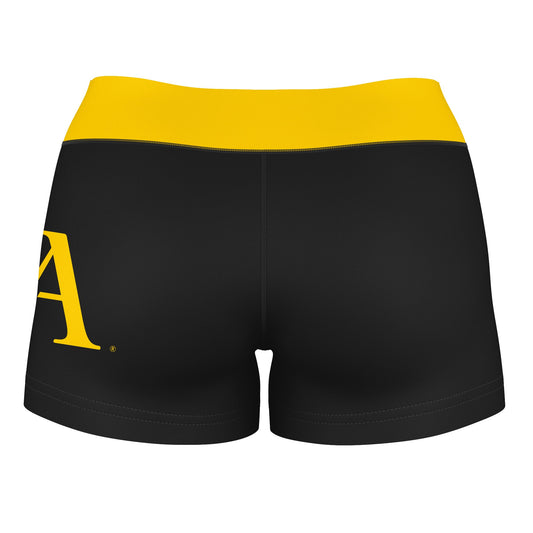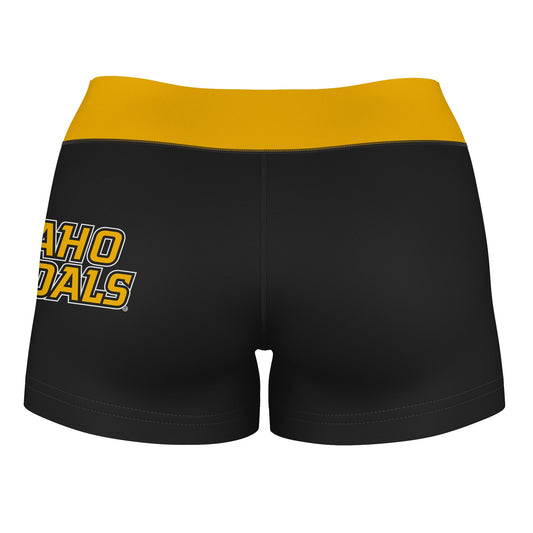 Idaho Vandals Game Day Logo on Thigh and Waistband Black & Gold Womens Yoga Booty Workout Shorts by Vive La Fete