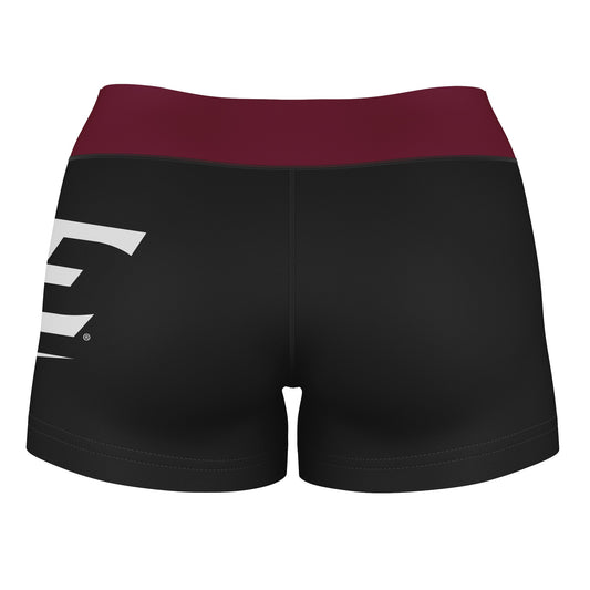 EKU Colonels Game Day Logo on Thigh & Waistband Black & Maroon Womens Yoga Booty Workout Shorts by Vive La Fete