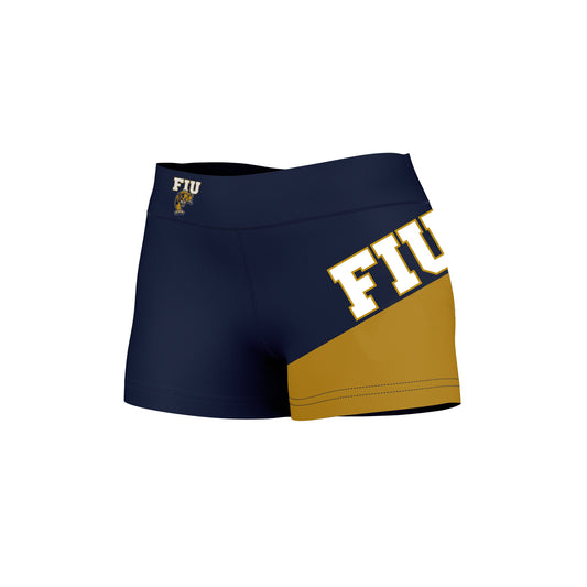 Florida International Panthers Game Day Collegiate Leg Color Block Navy Gold Optimum Womens Yoga Shorts by Vive La Fete