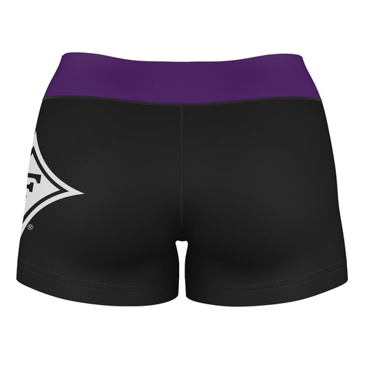 Furman Paladins Logo on Thigh and Waistband Black & Purple Womens Yoga Booty Workout Shorts by Vive La Fete