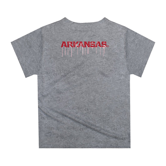 Arkansas Razorbacks Original Dripping Football Helmet Heather Gray T-Shirt for Boys by Vive La Fete