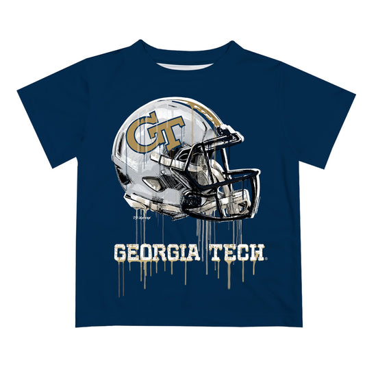 Georgia Tech Yellow Jackets Original Dripping Football Helmet Navy T-Shirt for Boys by Vive La Fete