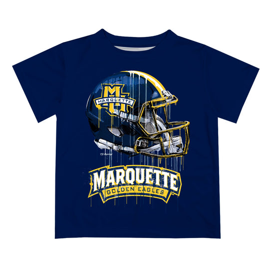 Marquette Golden Eagles Original Dripping Football Helmet Navy T-Shirt for Boys by Vive La Fete