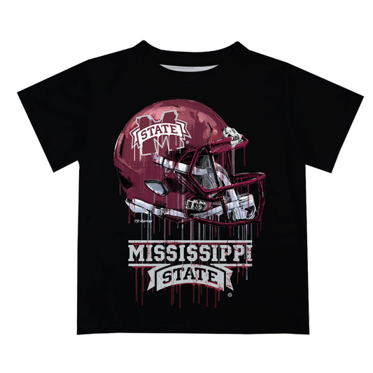 Mississippi State Bulldogs Original Dripping Football Helmet Black T-Shirt for Boys by Vive La Fete