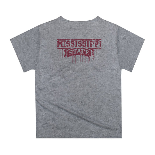 Mississippi State Bulldogs Original Dripping Football Helmet Gray T-Shirt for Boys by Vive La Fete