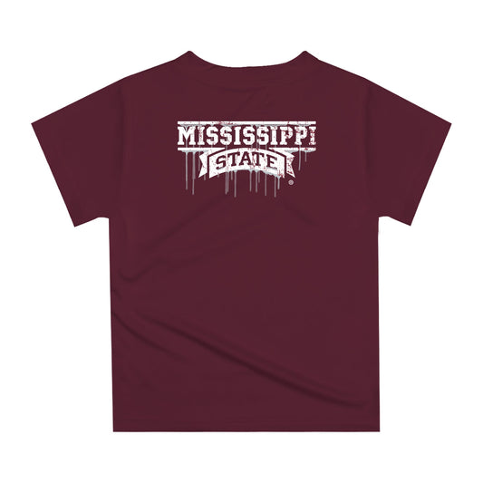 Mississippi State Bulldogs Original Dripping Football Helmet Maroon T-Shirt for Boys by Vive La Fete