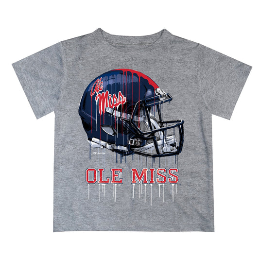Ole Miss Rebels Original Dripping Football Helmet Heather Gray T-Shirt for Boys by Vive La Fete