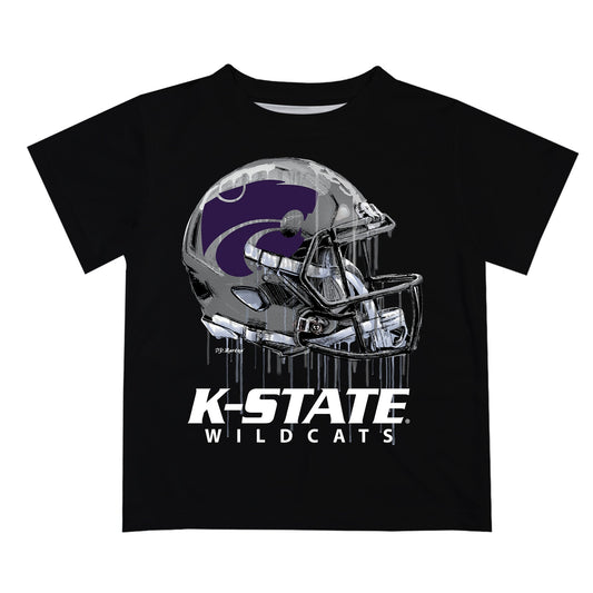 Kansas State University Wildcats K-State Original Dripping Football Helmet Black T-Shirt for Boys by Vive La Fete