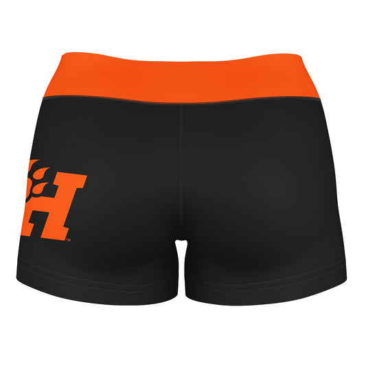 SHSU Bearkats Logo on Thigh and Waistband Black & Orange Womens Yoga Booty Workout Shorts by Vive La Fete