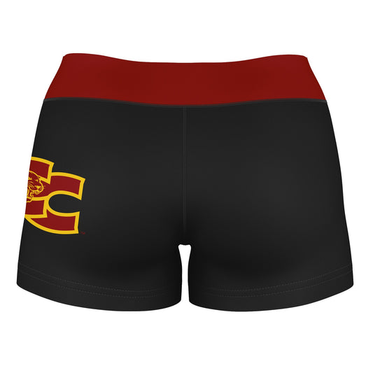SIUE Cougars Game Day Logo on Thigh and Waistband Black & Red Womens Yoga Booty Workout Shorts by Vive La Fete