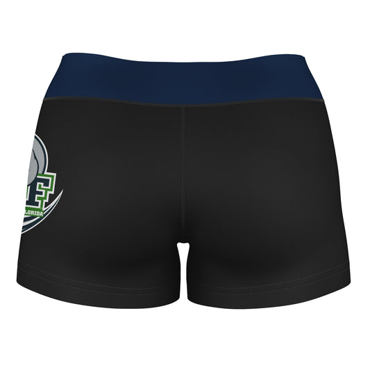 SCF Manatees Game Day Logo on Thigh and Waistband Black & Navy Womens Yoga Booty Workout Shorts by Vive La Fete