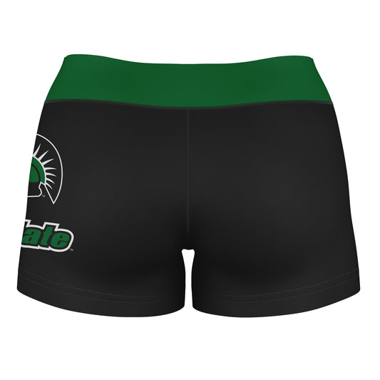 Upstate Spartans Logo on Thigh and Waistband Black & Green Womens Yoga Booty Workout Shorts by Vive La Fete