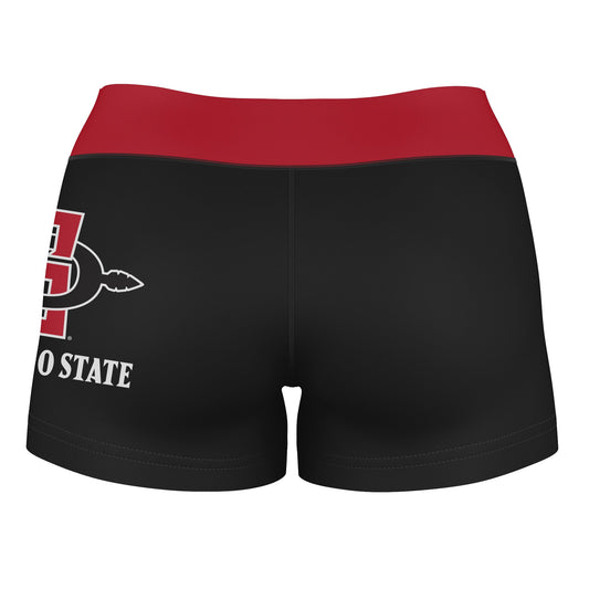 San Diego State Aztecs SDSU Logo on Thigh and Waistband Black and Red Womens Yoga Booty Workout Shorts by Vive La Fete