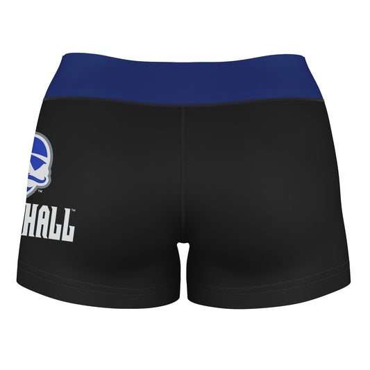 Seton Hall Pirates Logo on Thigh and Waistband Black & Blue Womens Yoga Booty Workout Shorts by Vive La Fete