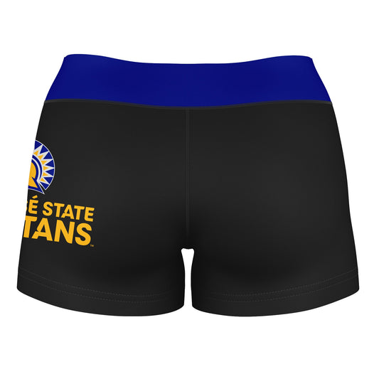 San Jose State Spartans Logo on Thigh and Waistband Black & Blue Womens Yoga Booty Workout Shorts by Vive La Fete
