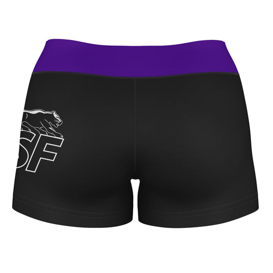 Sioux Falls Cougars USF Logo on Thigh and Waistband Black & Purple Booty Workout Shorts by Vive La Fete