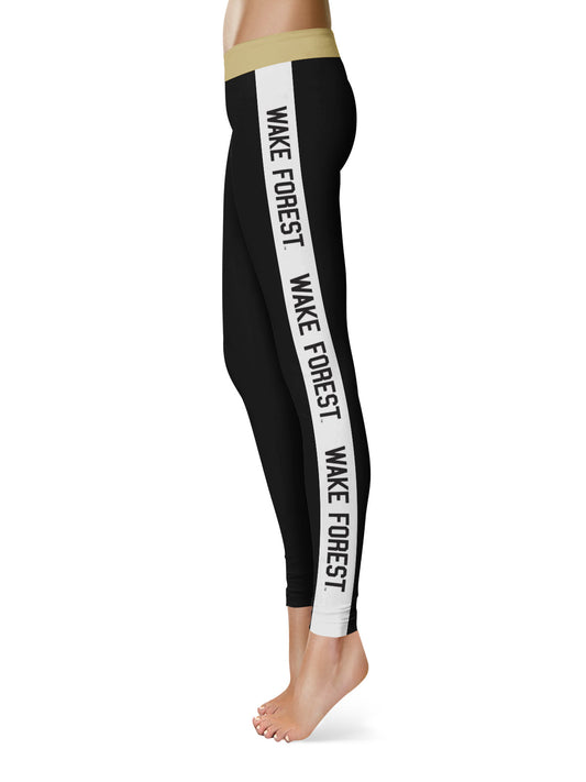 Wake Forest Demon Deacons WF Game Day White Stripes Black Yoga Leggings for Women by Vive La Fete