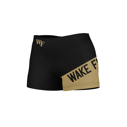 Wake Forest Demon Deacons WF Game Day Collegiate Leg Color Block Black Gold Optimum Womens Yoga Shorts by Vive La Fete