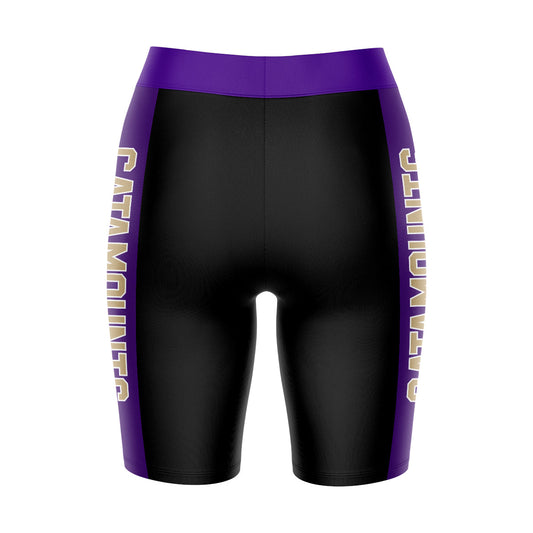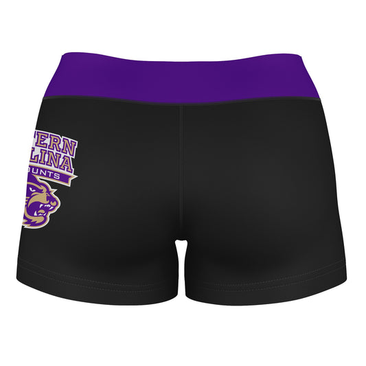 WCU Catamounts Logo on Thigh and Waistband Black & Purple Womens Yoga Booty Workout Shorts by Vive La Fete