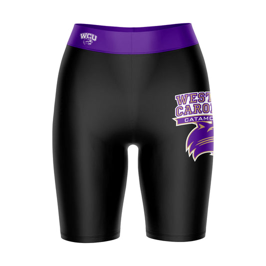 WCU Catamounts Game Day Logo on Thigh and Waistband Black and Purple Womens Bike Shorts by Vive La Fete