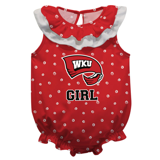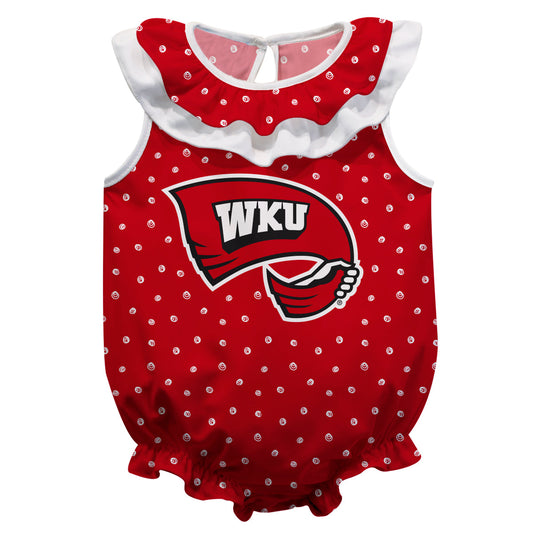 WKU Hilltoppers Swirls Red Sleeveless Ruffle One Piece Jumpsuit Logo Bodysuit by Vive La Fete
