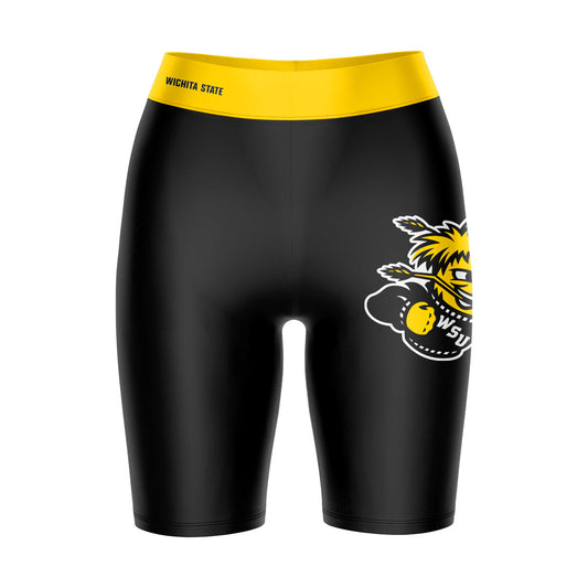 Wichita State Shockers WSU Game Day Logo on Thigh and Waistband Black and Gold Womens Bike Shorts by Vive La Fete