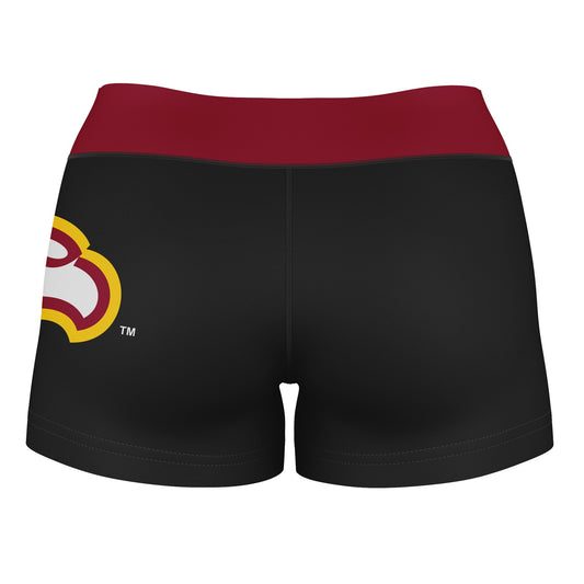 Winthrop University Eagles Logo on Thigh and Waistband Black & Maroon Womens Yoga Booty Workout Shorts by Vive La Fete