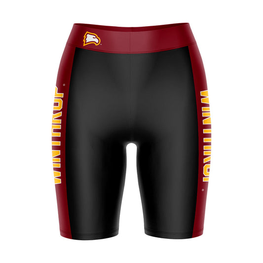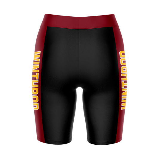 Winthrop University Eagles Game Day Logo on Waistband and Maroon Stripes Black Womens Bike Shorts by Vive La Fete