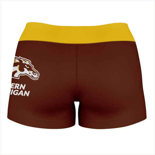 WMICH Broncos Logo on Thigh and Waistband Black and Brown Womens Yoga Booty Workout Shorts by Vive La Fete