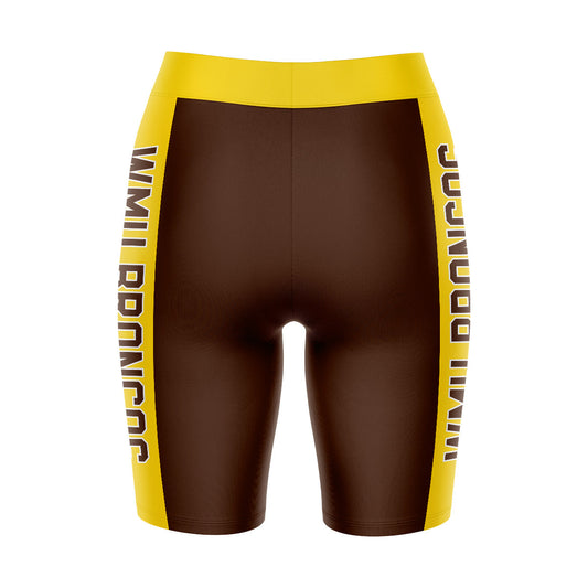 Western Michigan Broncos Game Day Logo on Waistband and Gold Stripes Brown Womens Bike Shorts by Vive La Fete
